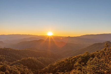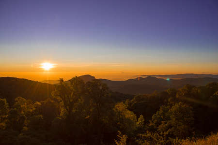 Landscape of sunset and mountain on morning time in Doi Inthanon chiangmai Thailand