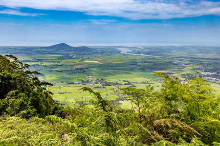 A view across the Glass House Mountains National Park near Brisbane, Queensland, Australia