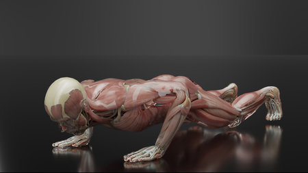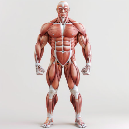 Anatomy of human muscles: comprehensive visual representation revealing intricacies and functionality of the muscular structure, an educational resource for medical studies and fitness enthusiasts