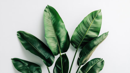 A stunning arrangement of banana plant leaves in various sizes displayed elegantly against a white background, perfect for nature-inspired decor and design.
