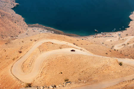 Road through dessert mountain Jabal Jais in United Arab Emirates