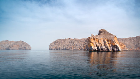 Beautiful coastal scenery near Khasab, in Musandam peninsula, Oman, photo taken from a boat during a tour