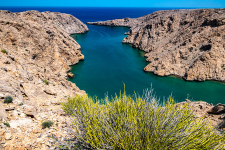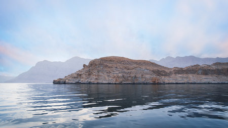 Sea tropical landscape with mountains and fjords, Oman