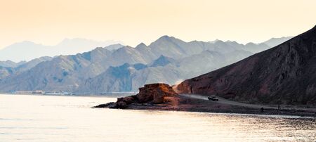 Sinai mountains on red sea riviera. Amazing Sunrise at Sinai Mountain, Beautiful dawn in Oman, Beautiful view from mountain. Persian Gulf colorful landscape