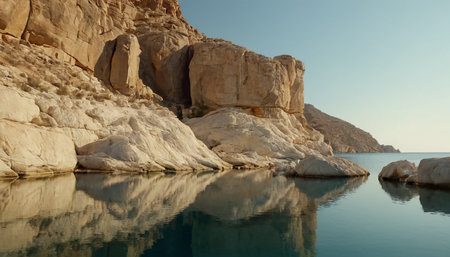Secluded bay features calm waters and a golden sandy beach, offering a tranquil sanctuary away from the hustle and bustle of everyday life.AI Generated