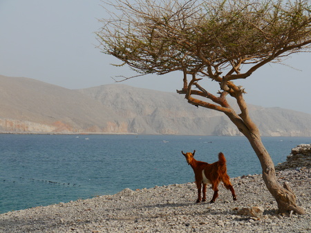 impression of the nature near Khasab with goat and tree, Oman