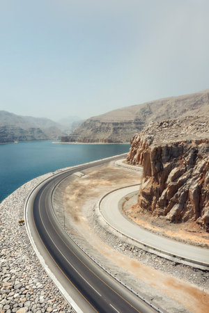 Scenic Khasab Coastal road in Musandam Governorate of Oman