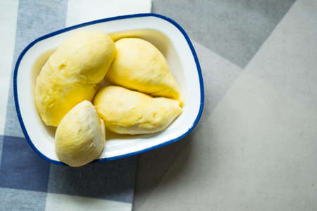 Durian riped / Fresh durian peel tropical fruit on white bowl