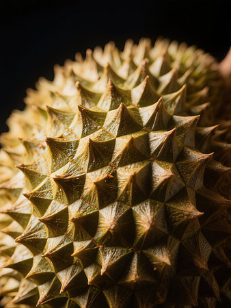 Closeup durian thorn. Durian, a hard-shelled fruit with green thorns and when ripe, it has a yellowish-green or brown