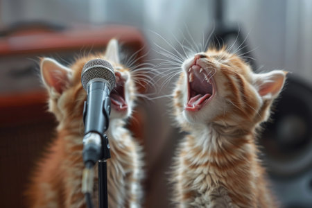Singing Cats, Disco of 80s, Concert of 90s, Karaoke with Kittens, Cat Disco, Funny Kitten Singer, Abstract Generative AI Illustration