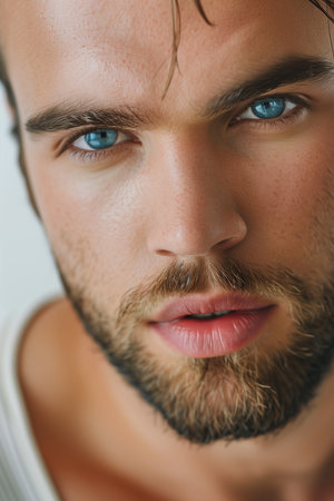 Close-up portrait of a handsome young man with beard and mustache