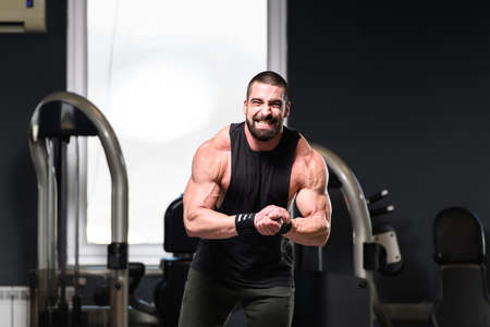 Man Standing Strong In The Gym And Flexing Muscles - Muscular Athletic Bodybuilder Fitness Model Posing After Exercises