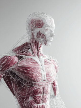 Intricate human muscle structure: detailed illustration showing the complexity and beauty of the muscular system, a fascinating study of anatomy and physiology