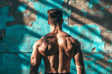 A muscular man with a muscular back and arms. The muscles are very defined and the man is posing for the camera