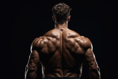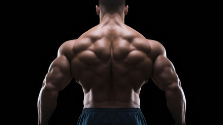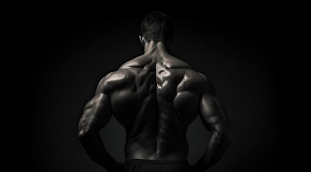 muscular man back view of a bodybuilder athlete in dark background. ai generative.
