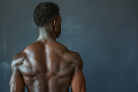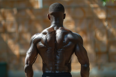Muscular Black Man's Back with Defined Shoulders and Abs