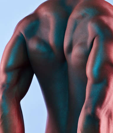 male back. Naked body muscular Man. Sport Gym Concept. Bodybuilding