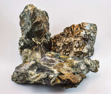 Macro mineral stone quartz chlorite Palygorskite rock on a white background close-up