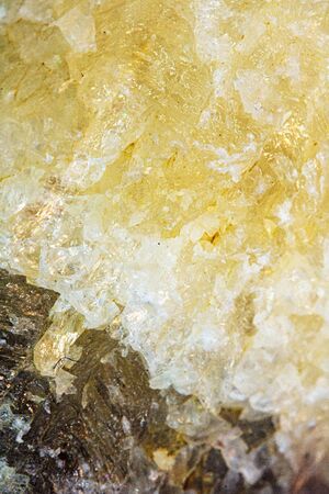 Yellow and brown quartz crystal shards embedded in mineral rock