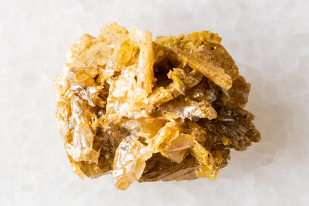sample of rough cerussite mineral on white marble background close up from Altai, Russia
