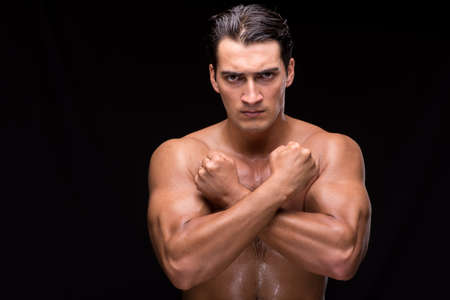 Fit and sporty bodybuilder over black background. Sportsman in studio. Sport and fitness concepts.