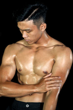 Asian muscle men posing muscle six abs on the black background | Asian Sexy Men fashion