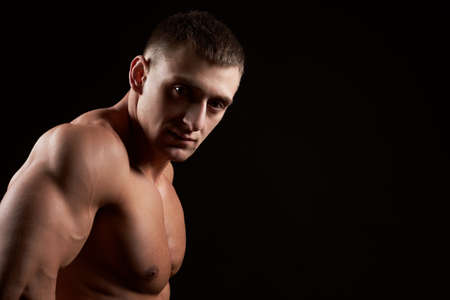 Strong athletic man on black background