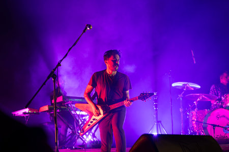 SIBIU, ROMANIA - JULY 27, 2019: Norwegian alternative rock band Madrugada performing a live concert on the stage at Artmania Festival