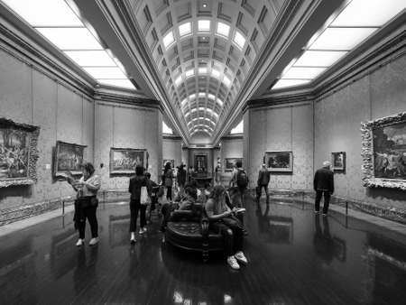 LONDON, UK - CIRCA JUNE 2017: Tourists visiting the British Museum in black and white