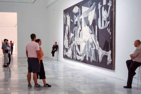 Madrid-July 5: Unknown people standig before the most famous painting by Pablo Picasso Guernica in Museo Nacional Centro de Arte Reina Sofia - Madrid on July 5, 2009