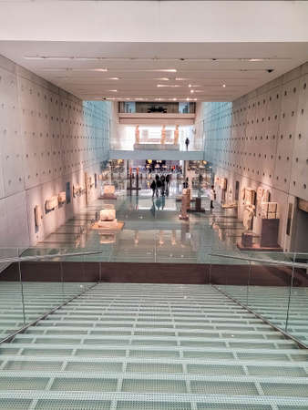 ATHENS, GREECE, 12 DECEMBER 2021: Interior of the modern Acropolis Museum with ancient greek findings