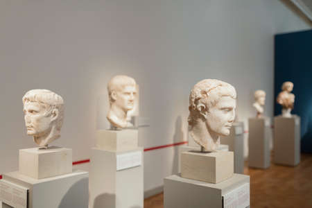 ROME, ITALY - JUNE 28, 2019: front view of ancient busts in vatican museum