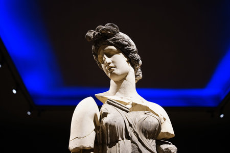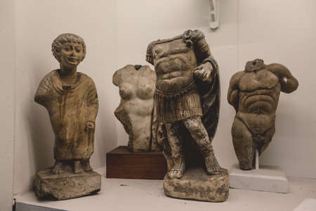 ANTALYA, TURKEY - MAY 17: Ancient antique statues exhibited in the Museum of Antalya. Partially destroyed they are restored by fragments. May 17, 2018 in Antalya, Turkey