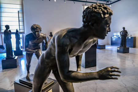 The runners, bronze statue in Naples National Archaeological Museum. The museum contains a large collection of Roman artifacts from Pompeii, Stabiae and Herculaneum.