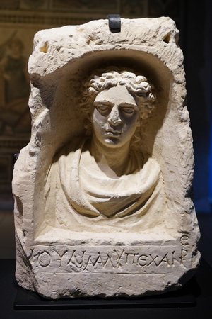 GAZIANTEP, TURKIYE - FEBRUARY 01, 2025: Ancient Stele in Zeugma Mosaic Museum