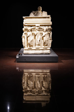 Istanbul, Turkey - October 2022: Sarcophagus in Istanbul Archaeological Museums. high quality photo