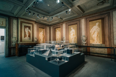 TUNIS, TUNISIA - APRIL 2 2024: Exhibition of Roman reliefs at Bardo Museum, Tunisia