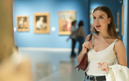 Tourist enjoying masterpieces from the renaissance period in a museum, appreciating culture and history