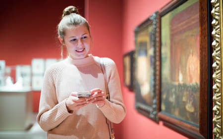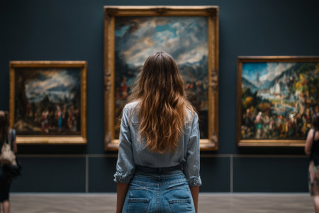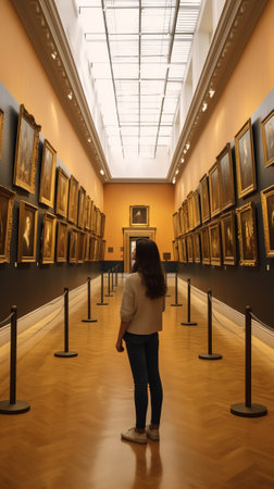 Tourist enjoying masterpieces from the renaissance period in a museum, appreciating culture and history