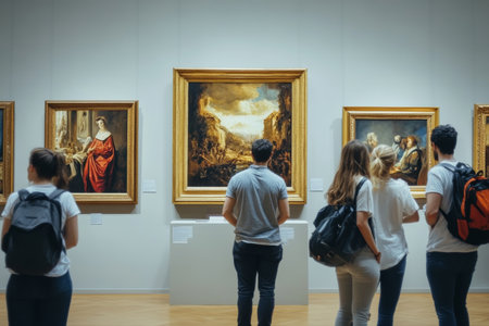 Visitors engaging with art in a vibrant gallery setting, appreciating creative masterpieces