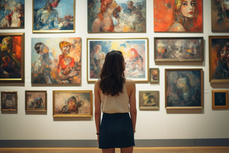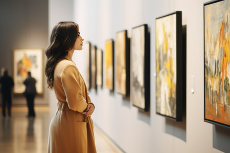 Captivated by Innovation: A Young Woman's Encounter with Modern Masterpieces at the Art Gallery