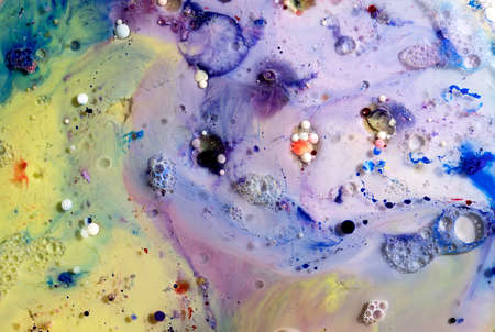 Texture liquid soap. Bubbles- drawing technique. Art fluid paint- cleansing wash. Creating abstract work- combinations of color, contrasts of smooth lines