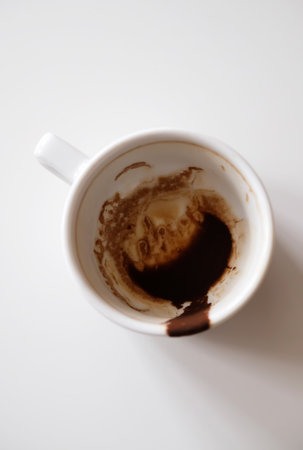 Glass coffee cup, finished coffee drink left over, Close up & Macro shot, Selective focus