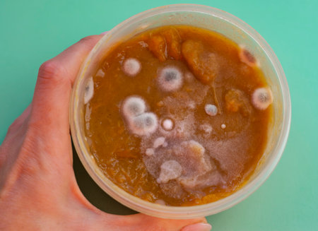 Old Green Fungus with White Fury Spots Growing on a Butter