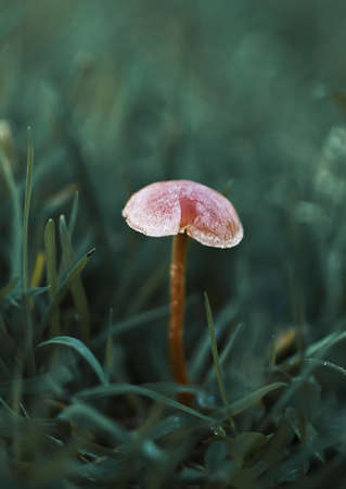 Pink mushroom growing in grass