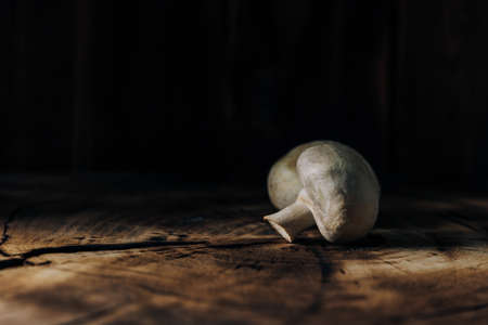 Mushrooms on a wooden background close up