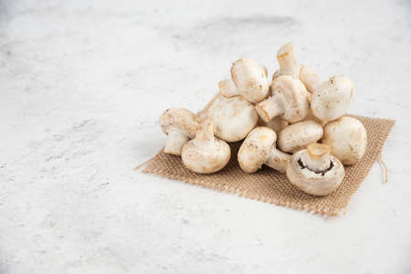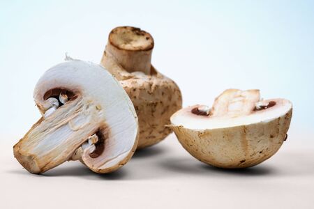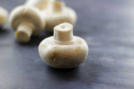 Fresh champignon mushrooms macro shoot. Close-up white champignon.