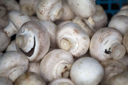 Fresh champignon mushrooms macro shoot. Close-up white champignon