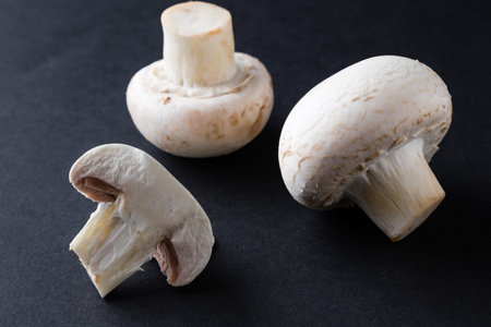Champignon mushrooms on a black background, organic and natural ingredient concept photo