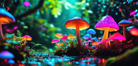 Vibrant Neon Mushrooms in Fantasy Forest
